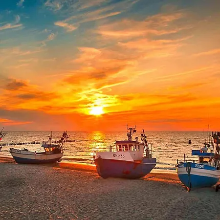 The beach is 750 metres away, and 16 Poludnik is 4.6 km from Villa Chrobry. The villa is within 15 minutes' walk of Plaza Mielno Public Beach and just a minute's drive from Rope Park Toucan Amusement Center. Mielno Przystan bus stop is also 500 metres from this accommodation.